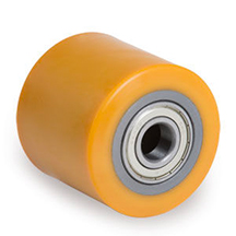 Equipment that is used in grocery stores and similar environments often will use a non-marking load wheel compound to avoid unsightly black marks on finished floors. When the lift truck or powered pallet jack is operated, observe the load wheels for smooth, noise-free operation. If any unusual noise is noticed, the bearings should be checked for binding.