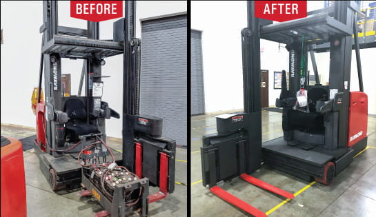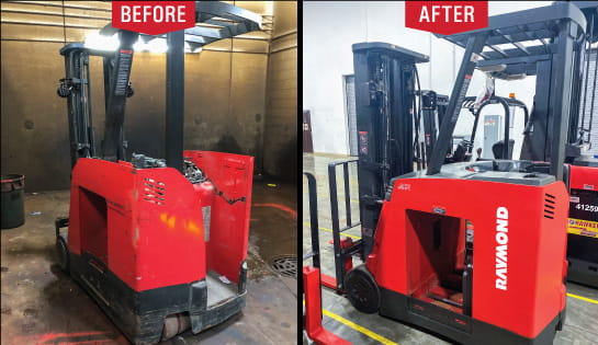 Each Raymond RENEWED used forklift or pallet jack has been refurbished, cleaned and thoroughly inspected by Raymond-certified technicians. We're confident in the quality of our reconditioned equipment — and as an extra level of protection, Raymond RENEWED used forklifts come with our buy-back guarantee!
