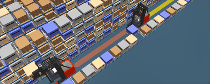 The In-Aisle Detection System is an application specific feature that automatically displays ‘sensor stop’ on the truck display, sounds an audible alarm, and decelerates a truck to a complete stop whenever it detects certain objects in its path (tractor first) and when locked on a wire in very narrow wire guided aisles.